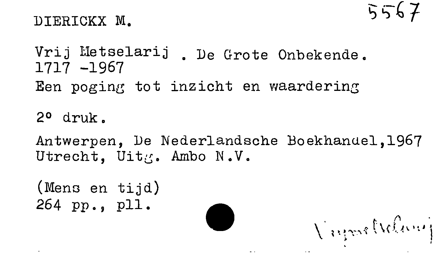 - De vrijmetselarij, de grote onbekende. 1717-1967 : een poging tot inzicht en waardering